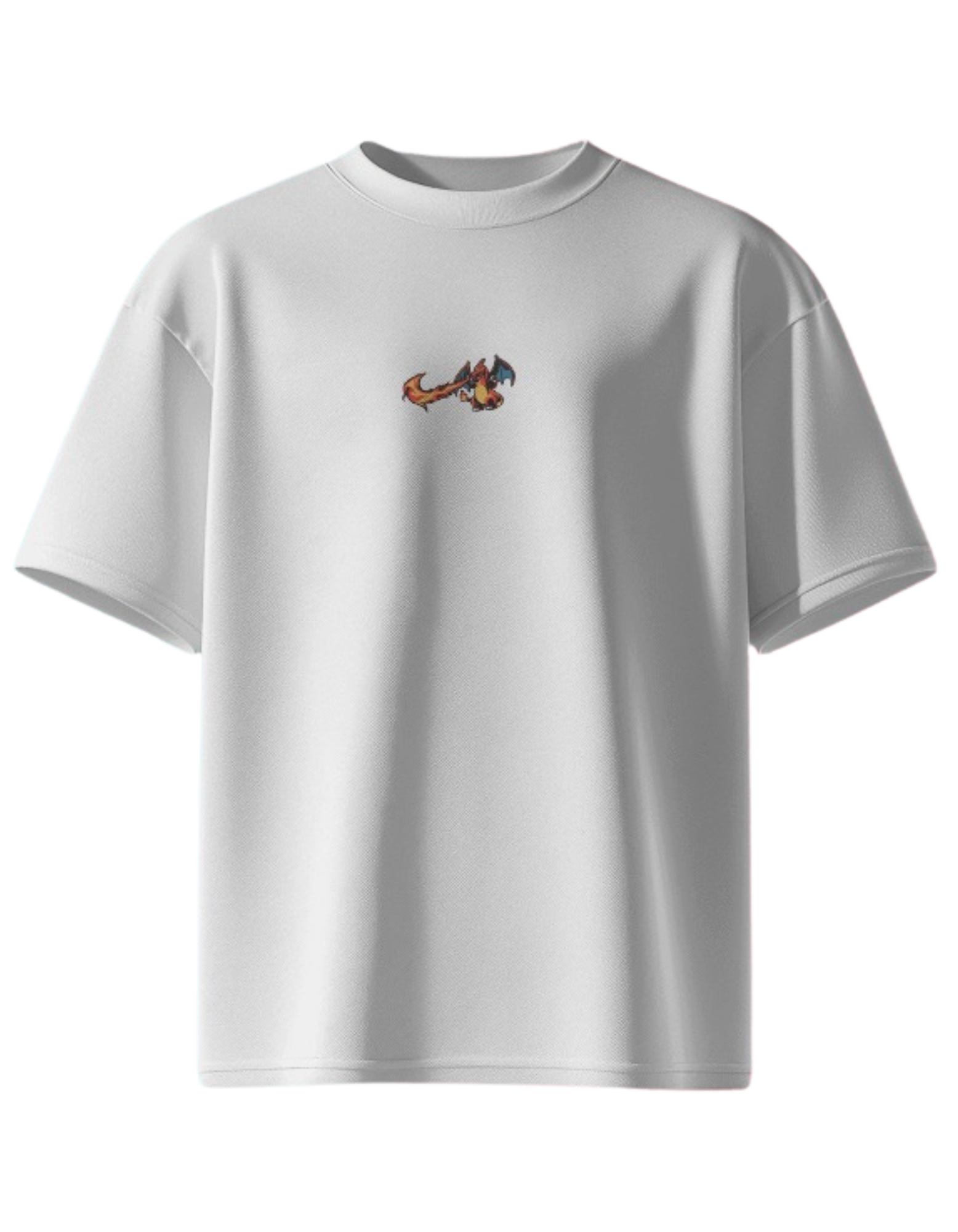At the center lies a meticulously embroidered dragon, symbolizing power, transformation, and fearless individuality. Done in fiery hues against crisp white, the emblem brings subtle energy without overpowering the minimalist aesthetic.